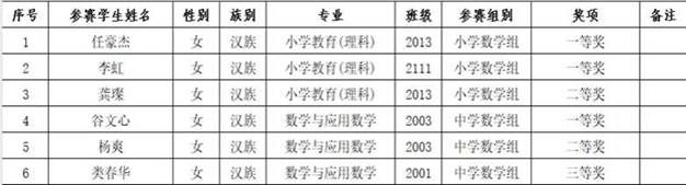 2023年12月3日,由自治区教育厅举办的第三届新疆高校师范生教学技能竞赛在昌吉学院落下帷幕,数学与统计学院学子在竞赛中表现出色,取得了优异的成绩。其中任豪杰、李虹获小学数学组一等奖;龚璨获小学数学组二等奖;谷文心获中学数学组一等奖;杨爽获中学数学组二等奖;类春华获中学数学组三等奖。